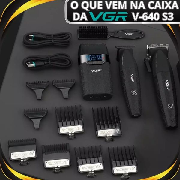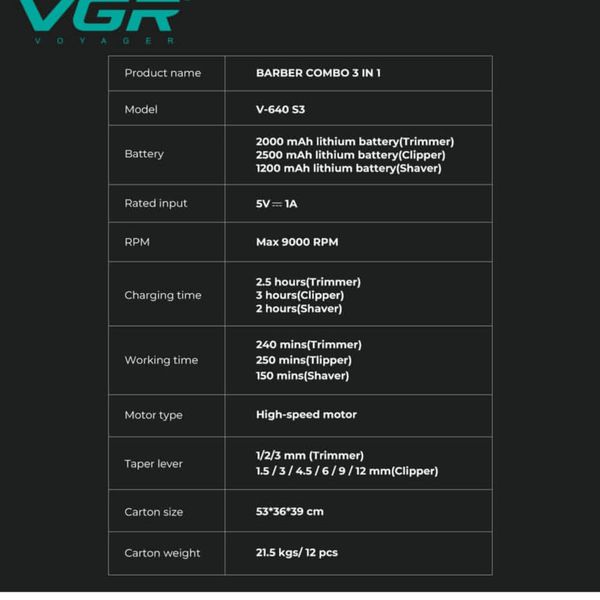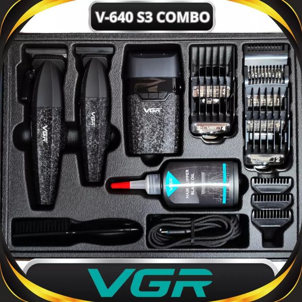 ماشین اصلاح موی سر و صورت شارژی وی جی ار مدل V-640 s3 مجموعه 3 عددی